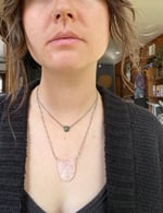 Rose Quartz Shield Necklace with patina sterling silver satellite chain.